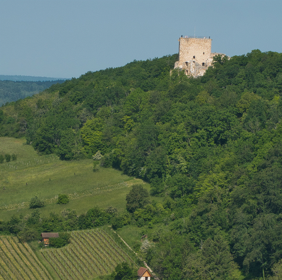 Ausgeruht machten wir uns auf den Abstieg in Richtung Ettingen. Dabei gingen wir durch den Eselgraben Richtung Ruine Fürstenstein. Die Burgruine Fürstenstein blieb unseren Blicken hinter einer Bodenwelle verborgen.
